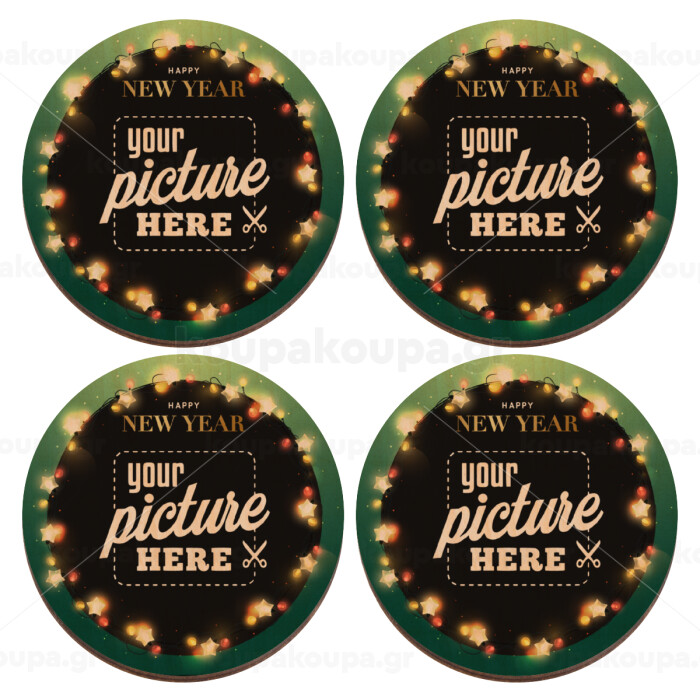 PHOTO xmas lights, ΣΕΤ x4 Σουβέρ ξύλινα στρογγυλά plywood (9cm)