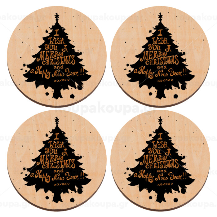 Tree, i wish you a merry christmas and a Happy New Year!!! xoxoxo, ΣΕΤ x4 Σουβέρ ξύλινα στρογγυλά plywood (9cm)
