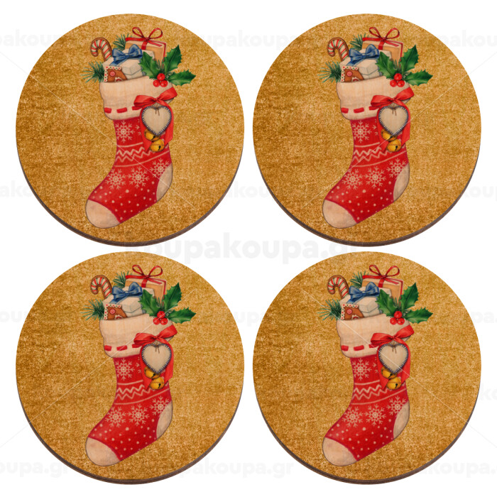 Xmas boot, ΣΕΤ x4 Σουβέρ ξύλινα στρογγυλά plywood (9cm)