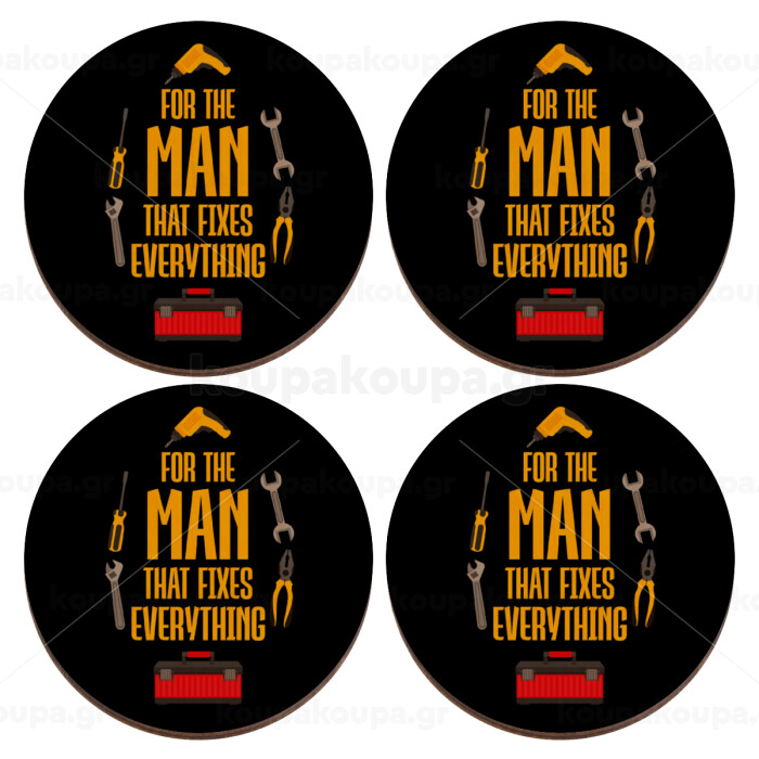 For the man that fixes everything!, ΣΕΤ x4 Σουβέρ ξύλινα στρογγυλά plywood (9cm)