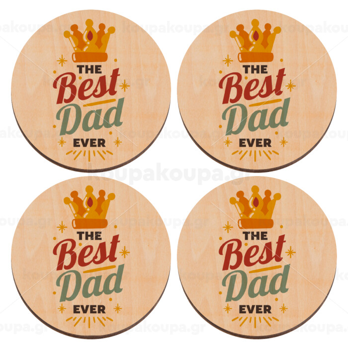 The Best DAD ever, ΣΕΤ x4 Σουβέρ ξύλινα στρογγυλά plywood (9cm)
