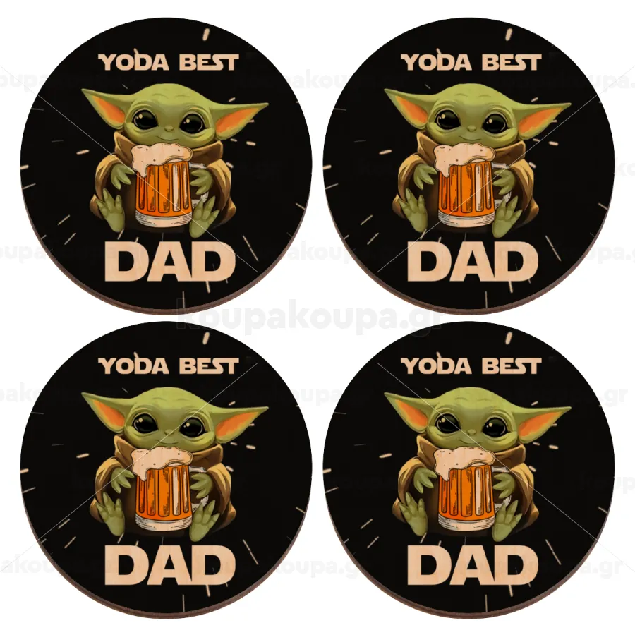 Yoda Best Dad, ΣΕΤ x4 Σουβέρ ξύλινα στρογγυλά plywood (9cm)