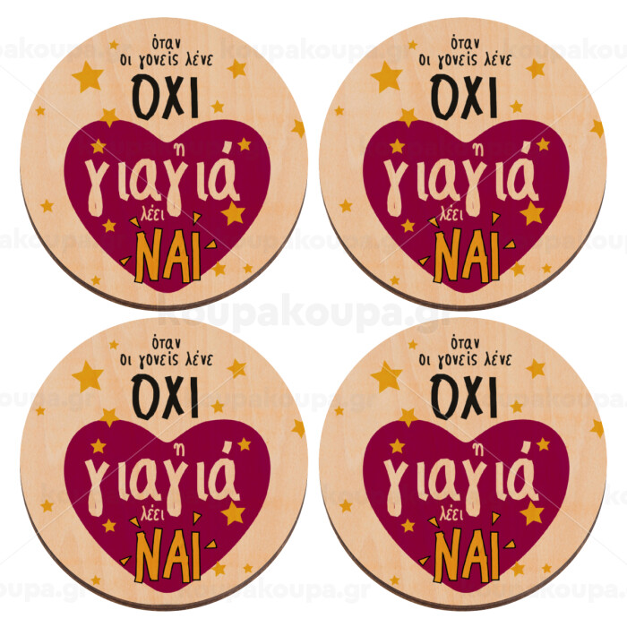 Όταν οι γονείς λένε ΟΧΙ, η γιαγιά λέει ΝΑΙ, ΣΕΤ x4 Σουβέρ ξύλινα στρογγυλά plywood (9cm)