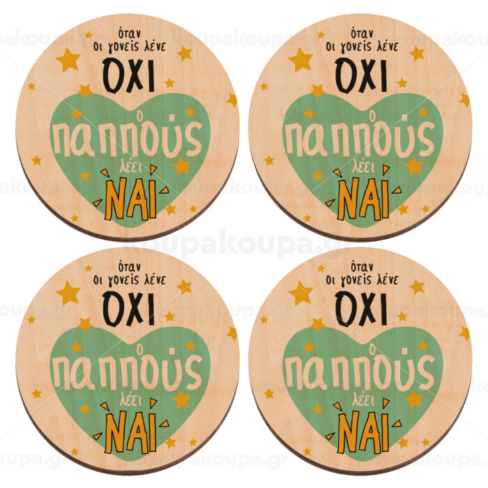 Όταν οι γονείς λένε ΟΧΙ, ο παππούς λέει ΝΑΙ, ΣΕΤ x4 Σουβέρ ξύλινα στρογγυλά plywood (9cm)