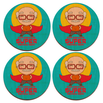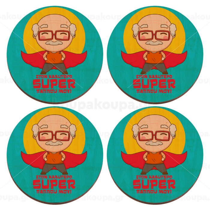 Στον καλύτερο Super παππού μου!, ΣΕΤ x4 Σουβέρ ξύλινα στρογγυλά plywood (9cm)