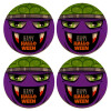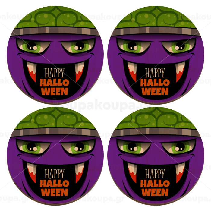 Halloween trick or treat Monster, ΣΕΤ x4 Σουβέρ ξύλινα στρογγυλά plywood (9cm)