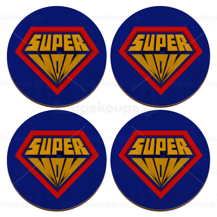 Super Mom 3D, ΣΕΤ x4 Σουβέρ ξύλινα στρογγυλά plywood (9cm)