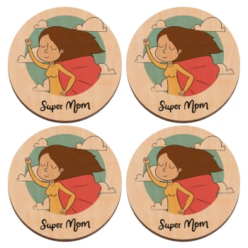 Super mom, ΣΕΤ x4 Σουβέρ ξύλινα στρογγυλά plywood (9cm)