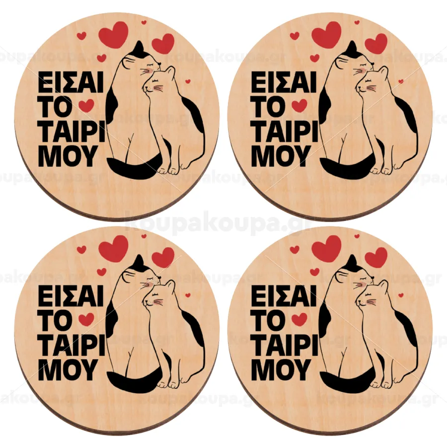 Είσαι το ταίρι μου, ΣΕΤ x4 Σουβέρ ξύλινα στρογγυλά plywood (9cm)