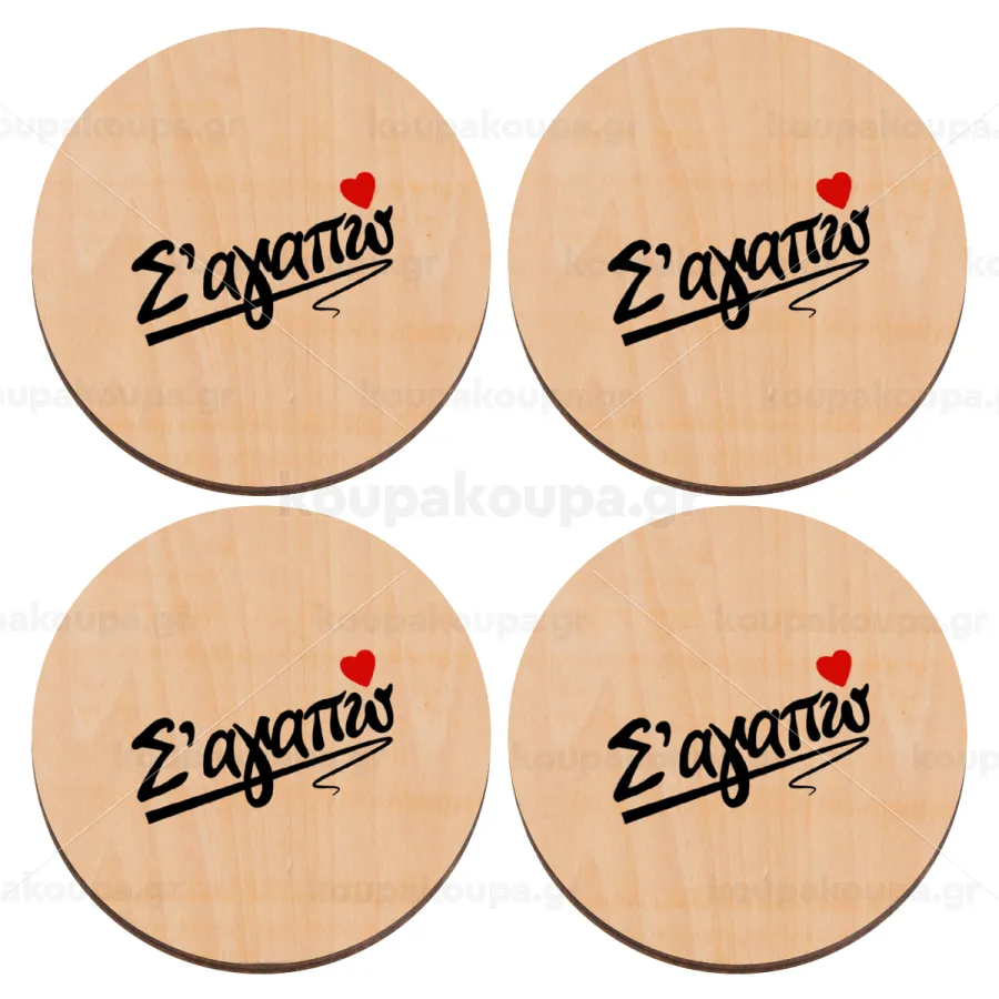 Σ΄ αγαπώ!!!, ΣΕΤ x4 Σουβέρ ξύλινα στρογγυλά plywood (9cm)