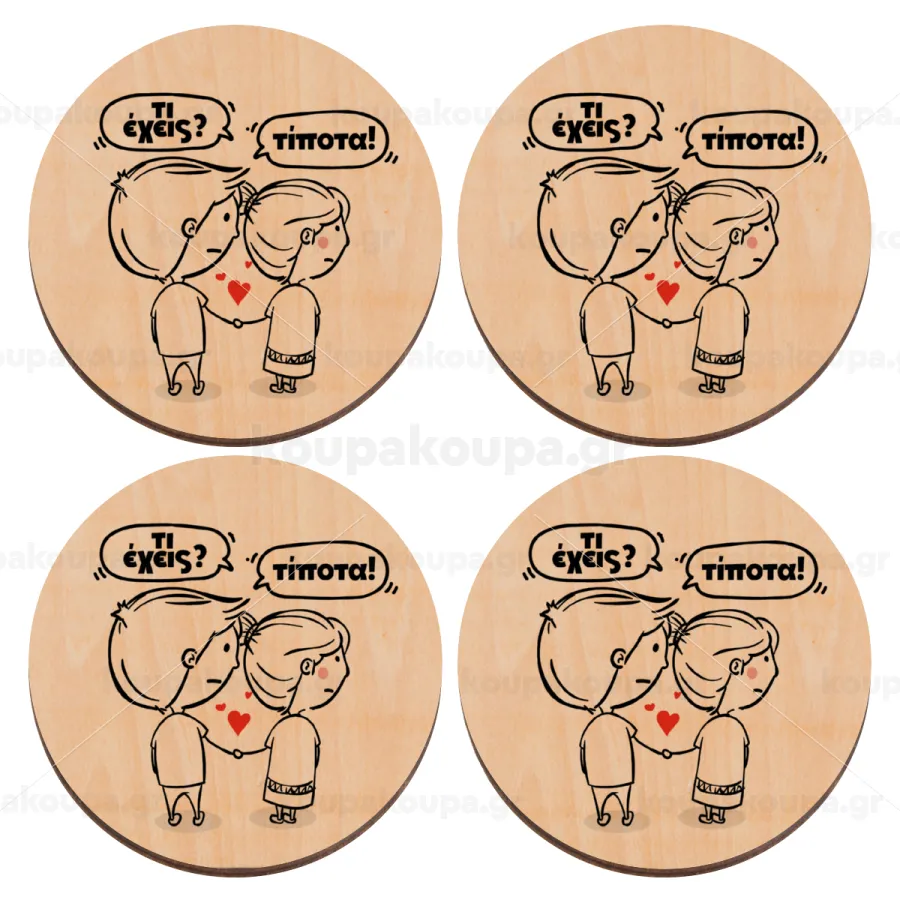 Τι έχεις? Τίποτα!, ΣΕΤ x4 Σουβέρ ξύλινα στρογγυλά plywood (9cm)