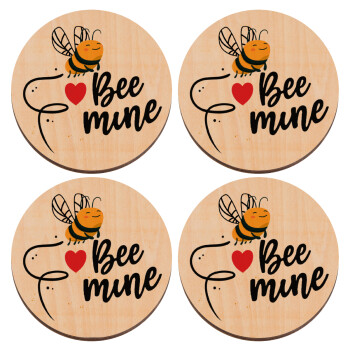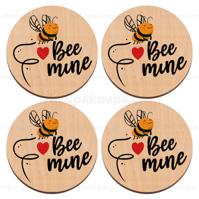 Bee mine!!!, ΣΕΤ x4 Σουβέρ ξύλινα στρογγυλά plywood (9cm)