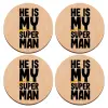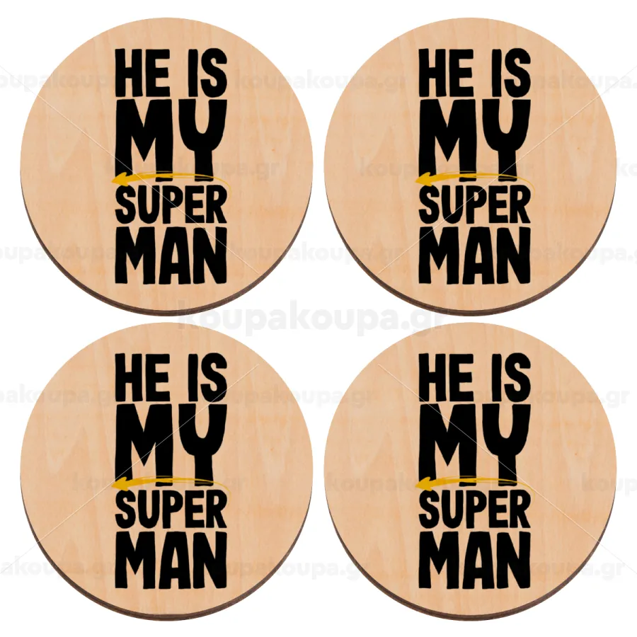 He is my superman, ΣΕΤ x4 Σουβέρ ξύλινα στρογγυλά plywood (9cm)