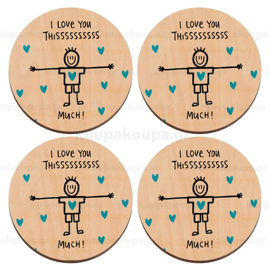 I Love you thissss much (boy)..., ΣΕΤ x4 Σουβέρ ξύλινα στρογγυλά plywood (9cm)
