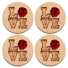 Love lights and roses, ΣΕΤ x4 Σουβέρ ξύλινα στρογγυλά plywood (9cm)