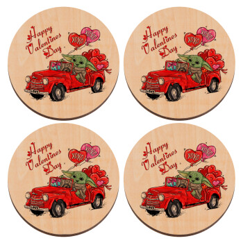 Yoda, happy valentines day (xoxo), ΣΕΤ x4 Σουβέρ ξύλινα στρογγυλά plywood (9cm)
