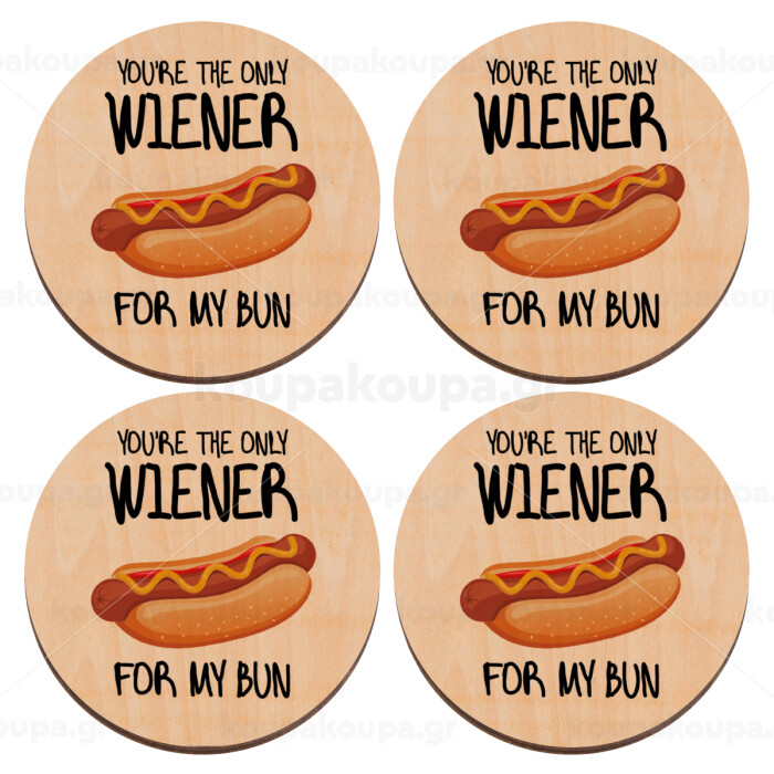 You re the only wiener for my bun, ΣΕΤ x4 Σουβέρ ξύλινα στρογγυλά plywood (9cm)