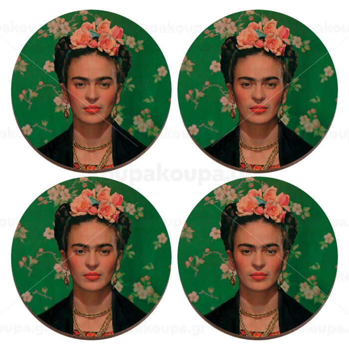 Frida Kahlo, ΣΕΤ x4 Σουβέρ ξύλινα στρογγυλά plywood (9cm)
