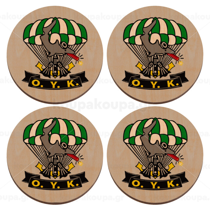 Ο.Υ.Κ., ΣΕΤ x4 Σουβέρ ξύλινα στρογγυλά plywood (9cm)