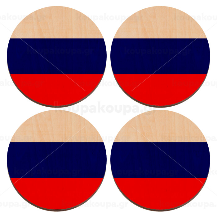 Russia flag, ΣΕΤ x4 Σουβέρ ξύλινα στρογγυλά plywood (9cm)