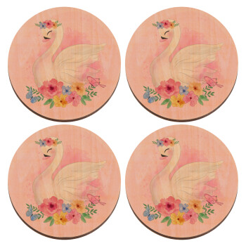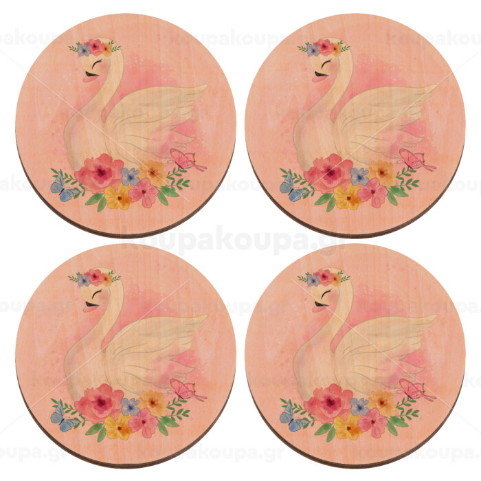 Λευκός κύκνος, ΣΕΤ x4 Σουβέρ ξύλινα στρογγυλά plywood (9cm)