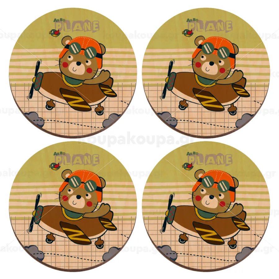 Ο μικρός αεροπόρος, ΣΕΤ x4 Σουβέρ ξύλινα στρογγυλά plywood (9cm)