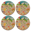 City road track maps, ΣΕΤ x4 Σουβέρ ξύλινα στρογγυλά plywood (9cm)