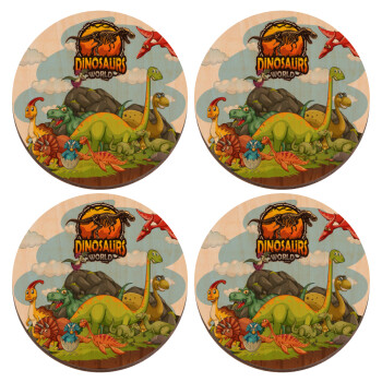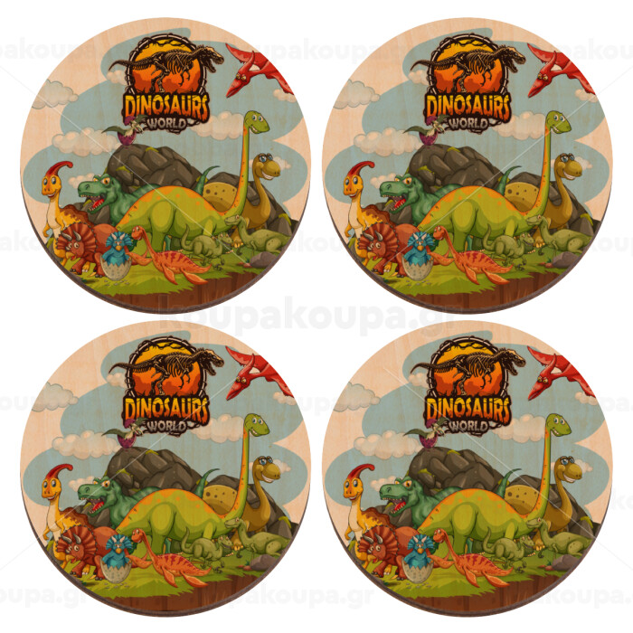 Dinosaur's world, ΣΕΤ x4 Σουβέρ ξύλινα στρογγυλά plywood (9cm)