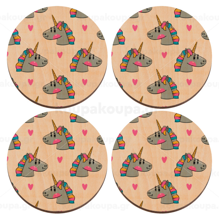 Unicorn, ΣΕΤ x4 Σουβέρ ξύλινα στρογγυλά plywood (9cm)