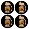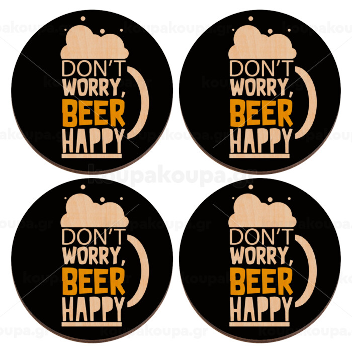 Don't worry BEER Happy, ΣΕΤ x4 Σουβέρ ξύλινα στρογγυλά plywood (9cm)