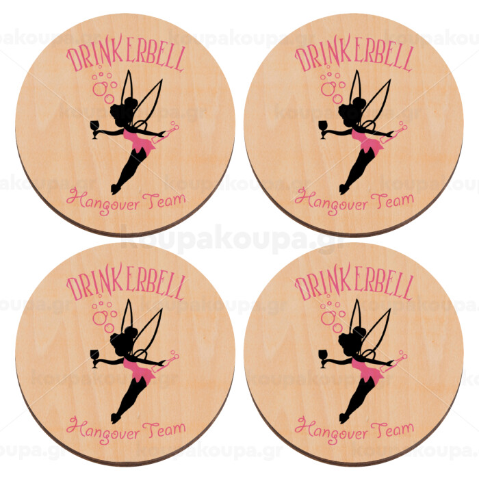 Drinkerbell bachellor, ΣΕΤ x4 Σουβέρ ξύλινα στρογγυλά plywood (9cm)