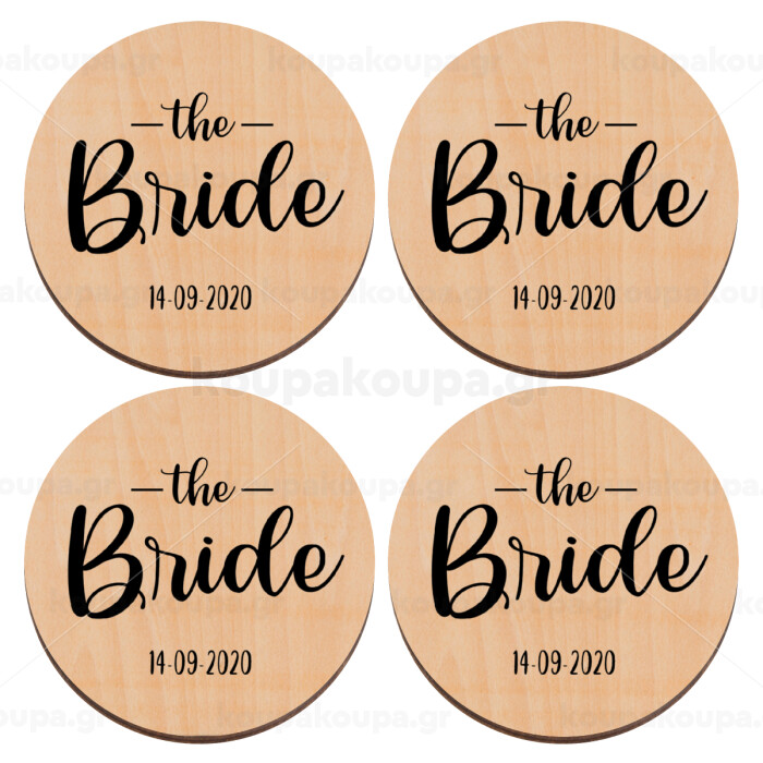 Groom & Bride (Bride), ΣΕΤ x4 Σουβέρ ξύλινα στρογγυλά plywood (9cm)