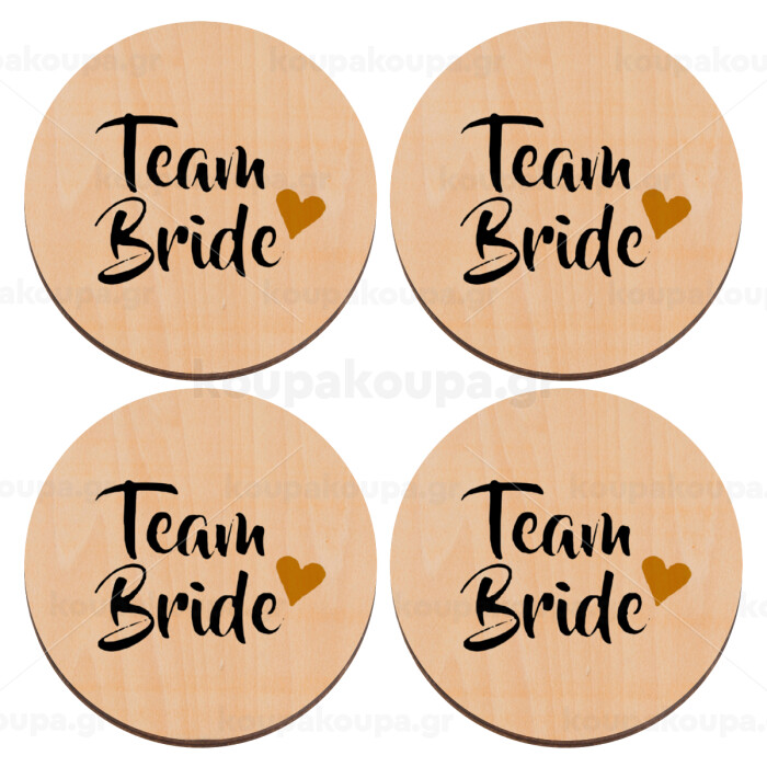 Team Bride, ΣΕΤ x4 Σουβέρ ξύλινα στρογγυλά plywood (9cm)