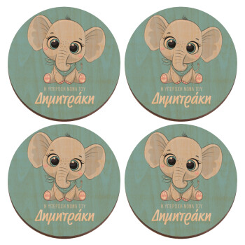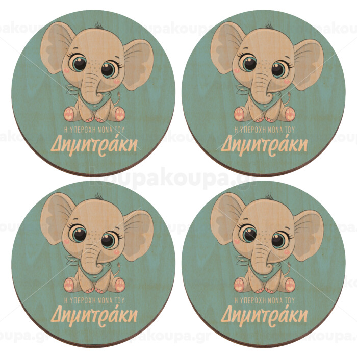 Η νονά μου, ελεφαντάκι γαλάζιο, ΣΕΤ x4 Σουβέρ ξύλινα στρογγυλά plywood (9cm)