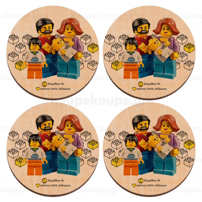 Τύπου Lego family, ΣΕΤ x4 Σουβέρ ξύλινα στρογγυλά plywood (9cm)