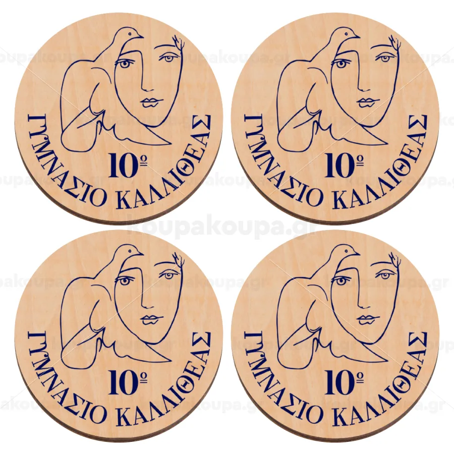 Έμβλημα Σχολικό, ΣΕΤ x4 Σουβέρ ξύλινα στρογγυλά plywood (9cm)