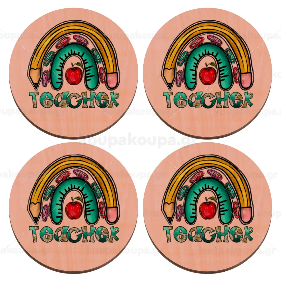 Teacher, ΣΕΤ x4 Σουβέρ ξύλινα στρογγυλά plywood (9cm)