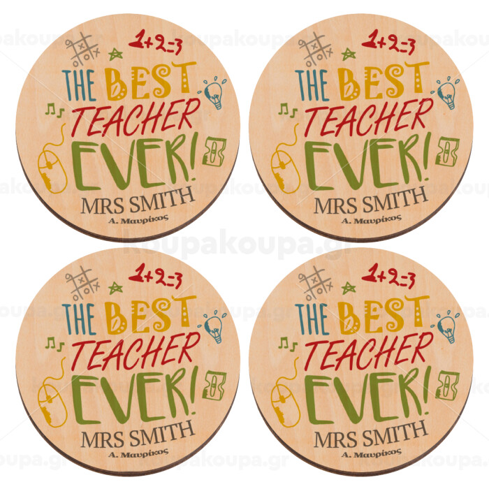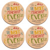 The best teacher ever!, ΣΕΤ x4 Σουβέρ ξύλινα στρογγυλά plywood (9cm)