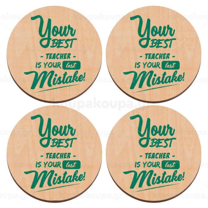 Your best teacher is your last mistake, ΣΕΤ x4 Σουβέρ ξύλινα στρογγυλά plywood (9cm)