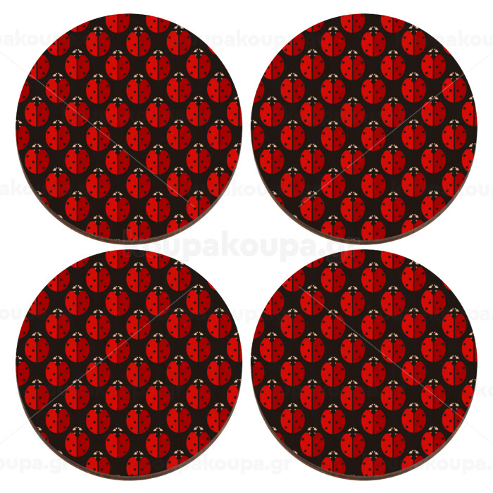 Πασχαλίτσα, ΣΕΤ x4 Σουβέρ ξύλινα στρογγυλά plywood (9cm)