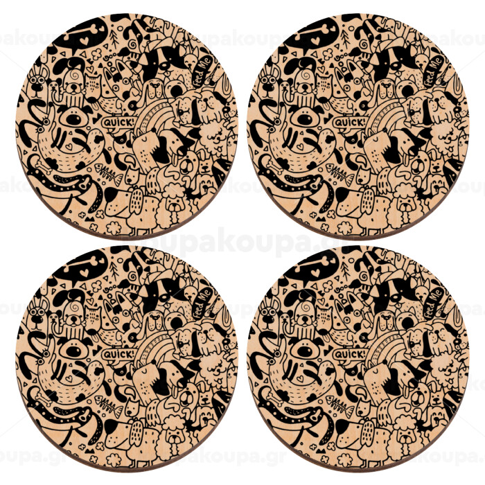 Σκυλάκια, ΣΕΤ x4 Σουβέρ ξύλινα στρογγυλά plywood (9cm)