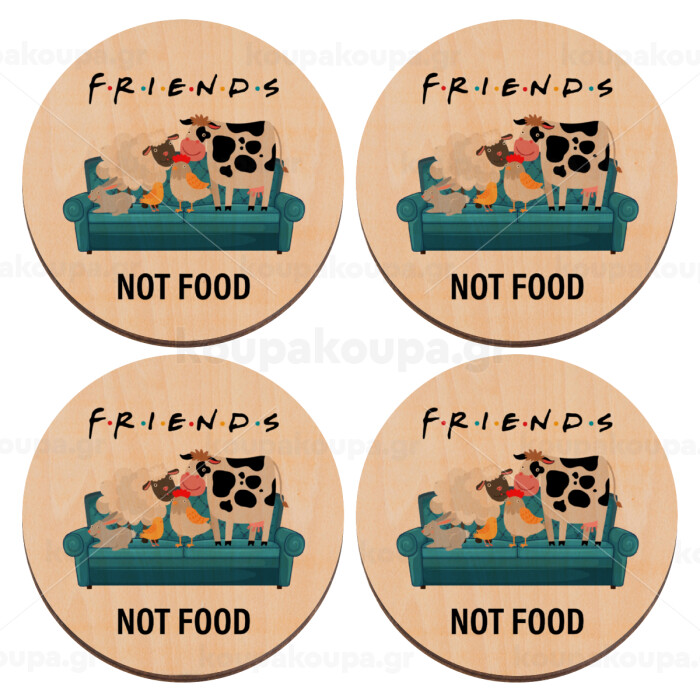 friends, not food, ΣΕΤ x4 Σουβέρ ξύλινα στρογγυλά plywood (9cm)