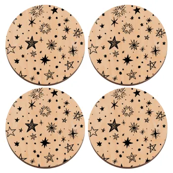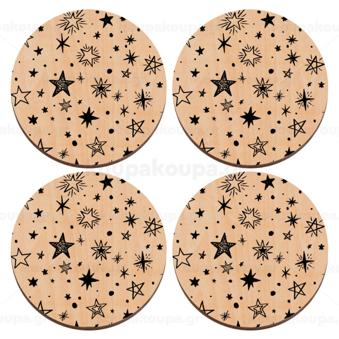 Doodle Stars, ΣΕΤ x4 Σουβέρ ξύλινα στρογγυλά plywood (9cm)