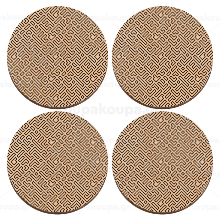 Doodle Maze, ΣΕΤ x4 Σουβέρ ξύλινα στρογγυλά plywood (9cm)