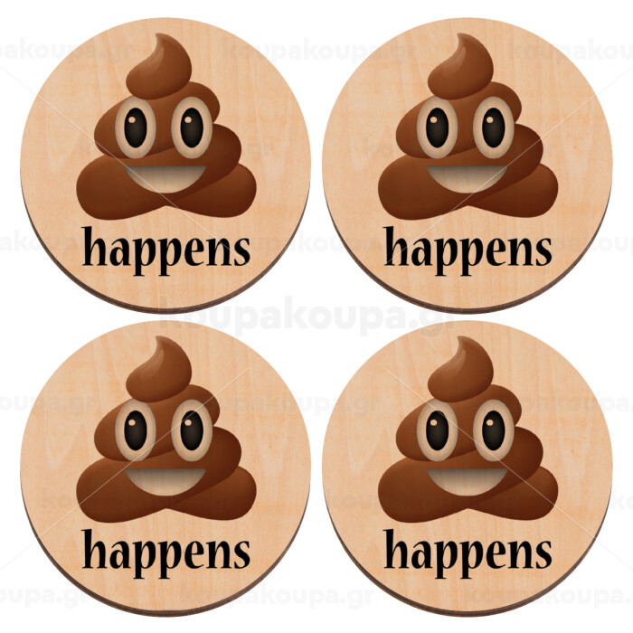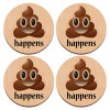 Shit Happens, ΣΕΤ x4 Σουβέρ ξύλινα στρογγυλά plywood (9cm)