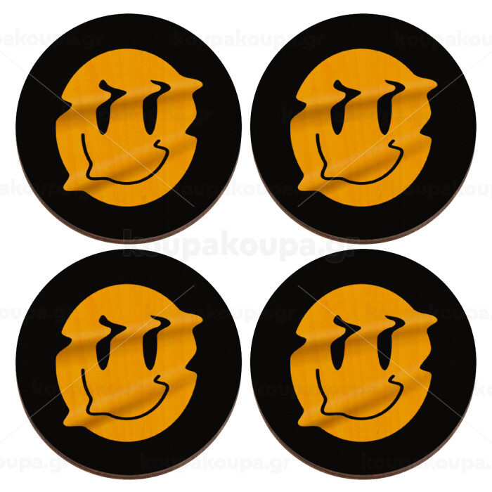 Smile avatar distrorted, ΣΕΤ x4 Σουβέρ ξύλινα στρογγυλά plywood (9cm)