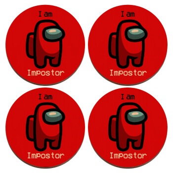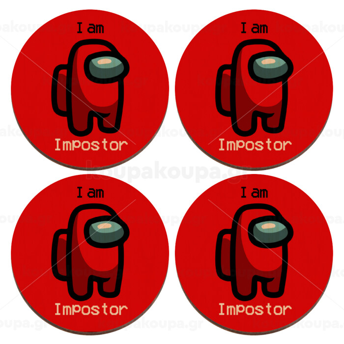 Among US i am impostor, ΣΕΤ x4 Σουβέρ ξύλινα στρογγυλά plywood (9cm)