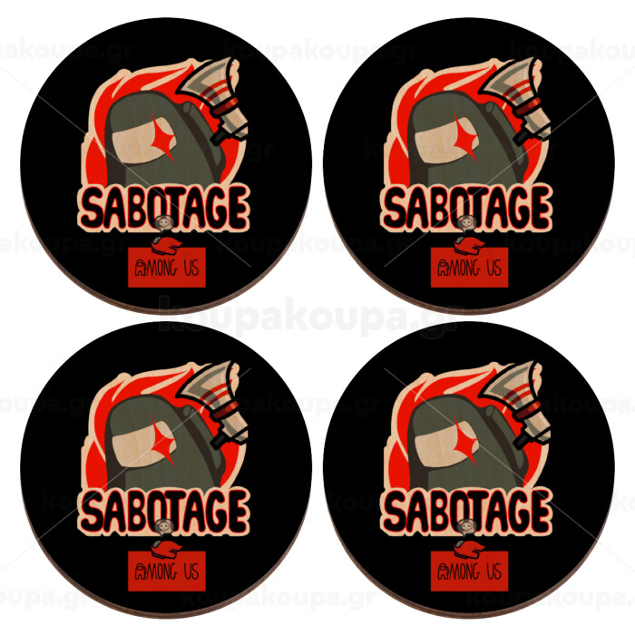 Among US Sabotage, ΣΕΤ x4 Σουβέρ ξύλινα στρογγυλά plywood (9cm)