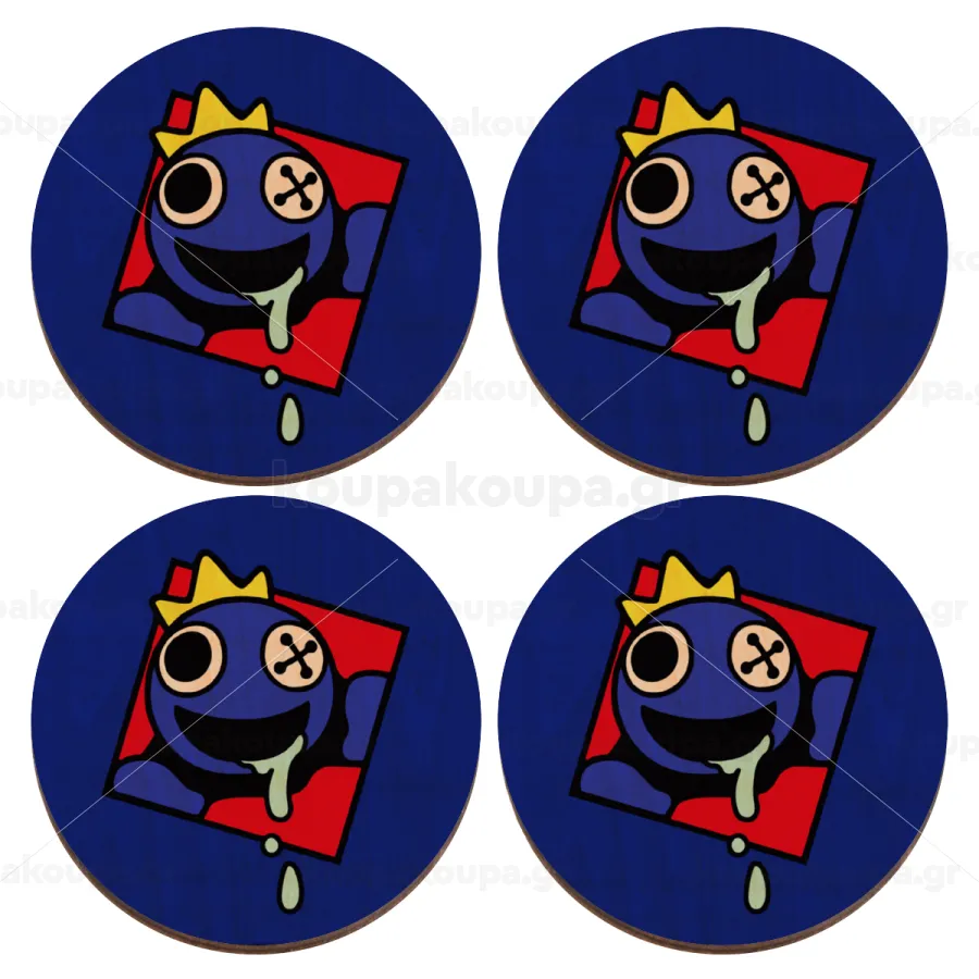 Blue, Rainbow friends, ΣΕΤ x4 Σουβέρ ξύλινα στρογγυλά plywood (9cm)