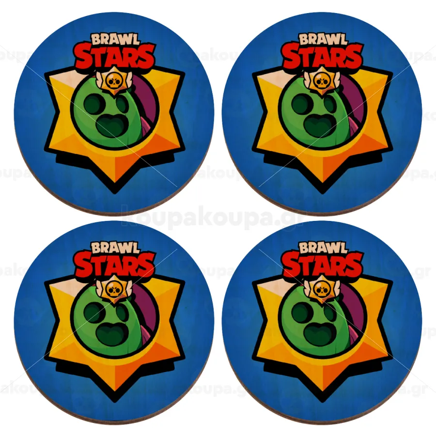 Brawl Stars Spike, ΣΕΤ x4 Σουβέρ ξύλινα στρογγυλά plywood (9cm)